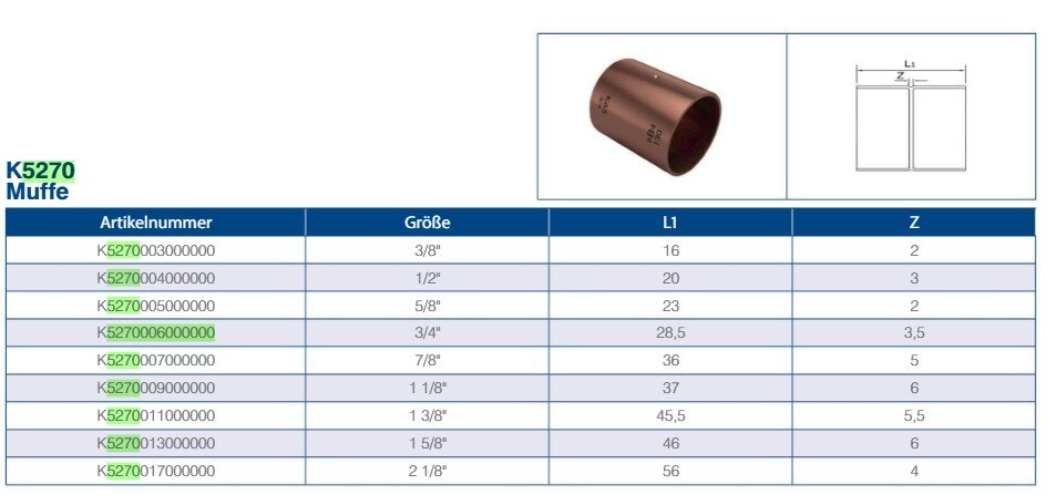 Conex IBP Löt Muffe S.5000 5270 Kupfer verschieden Größen, metrisch | 10 | 12 | 15 | 16 | 18 | 22 | 28 | 35 mm.