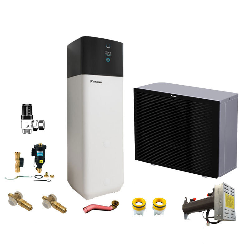 Daikin Wärmepumpen Set mit Hydromodul, Warmwasserspeicher 500 Liter und Heizstab 3 kW.