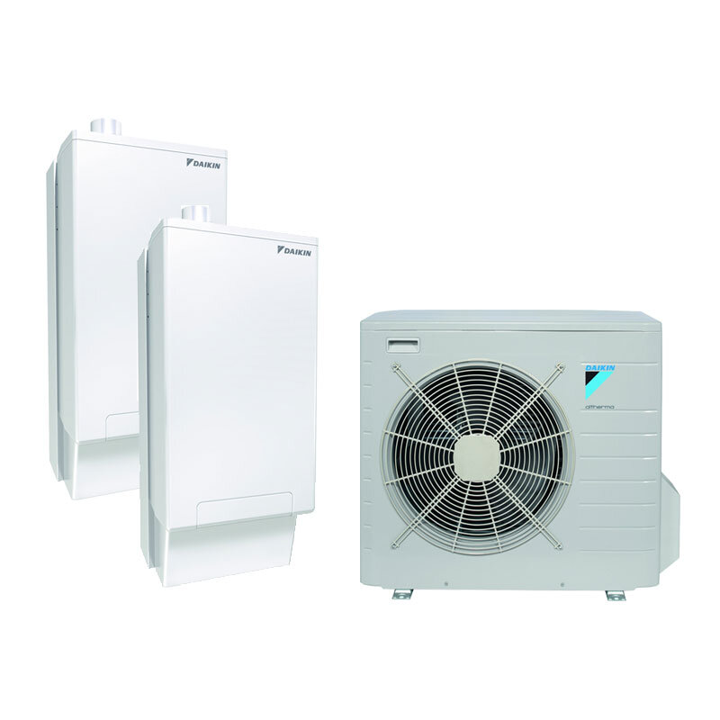 Mit einer Wärmepumpenleistung von 5 oder 8 kW ist die DAIKIN Altherma R Hybrid bestens geeignet für die Modernisierung und in Mehrfamilienhäusern. Die Wärmepumpe wird durch das Gas-Brennwert-Wandgerät mit einer Leistung von 33 kW unterstützt.