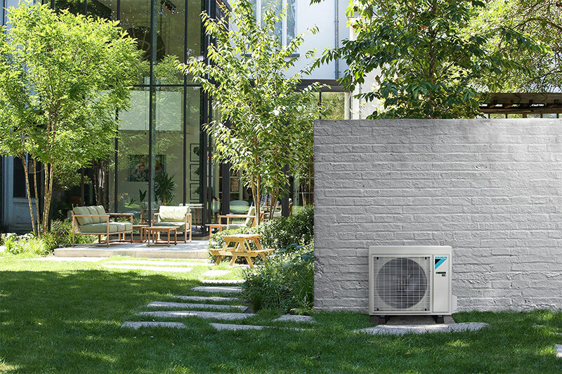 Daikin Außengeräte haben ein gefälliges Design und sind robust und können auf dem Dach oder auf der Terrasse oder einfach an einer Wand montiert werden.