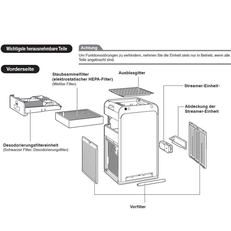 Bei der Ansaugung der Raumluft arbeitet das Gerät sehr leise und effizient.