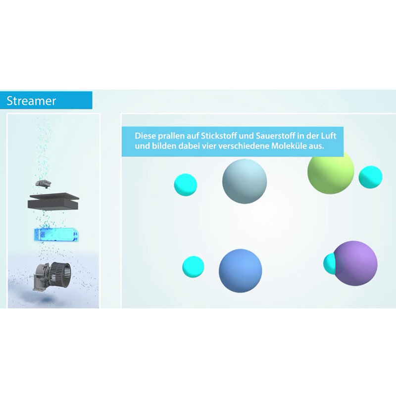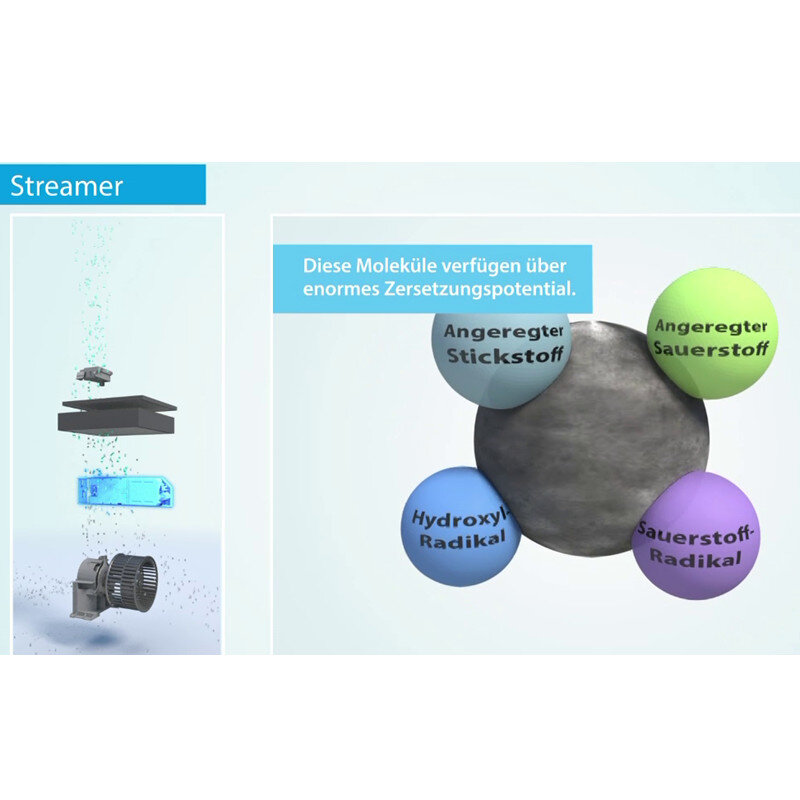 - Reine Luft, dank durch Plasmaentladung aktivierter Ionen & Flash Streamer-Technologie