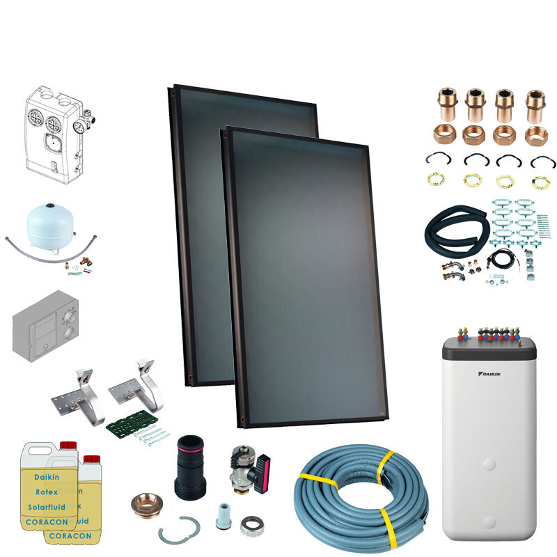 Daikin Aufdach Solarthermie Set Kollektor V21P für 3 Personen Haushalt | 2 x EKSV21P Solarpanel, mit Altherma ST Speícher 500 Liter, Solaris Druckanlage & und allem Zubehör.