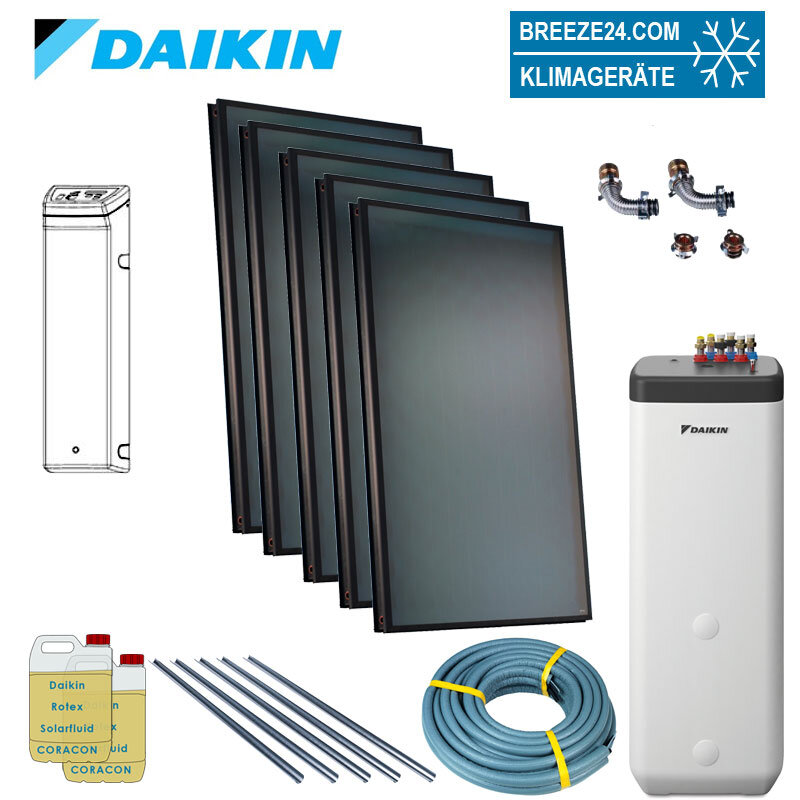 Daikin Indach Solarthermie Set Kollektor V21 P DB für 9 Personen Haushalt | 5 x EKSV21P Solarpanel, mit Altherma ST Speícher 500 Liter, Drain-Back-System & und allem Zubehör.