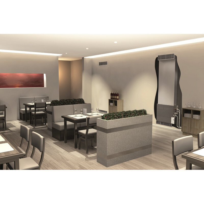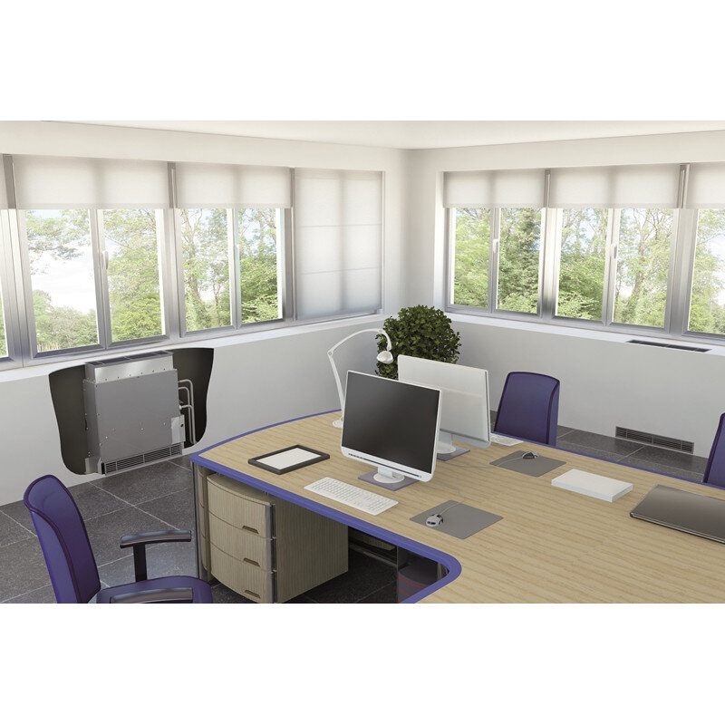 Benötigt mit einer Tiefe von lediglich 200 mm sehr wenig Installationsraum. Dank der geringen Höhe (620 mm) ist die Installation auch unter einem Fenster problemlos möglich. Hoher externer statischer Druck ermöglicht flexible Installation.