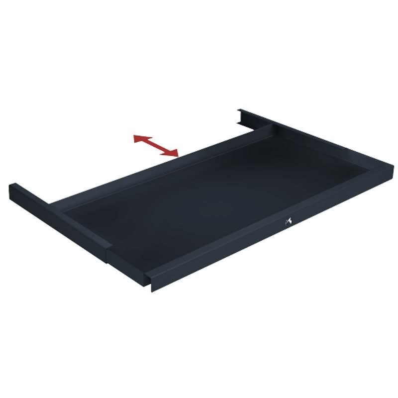Abnehmbare Schublade aus Aluminium. Einfach mit 2 Schienen zu befestigen – unter der Klimaanlagenverkleidung Ihrer Wahl.