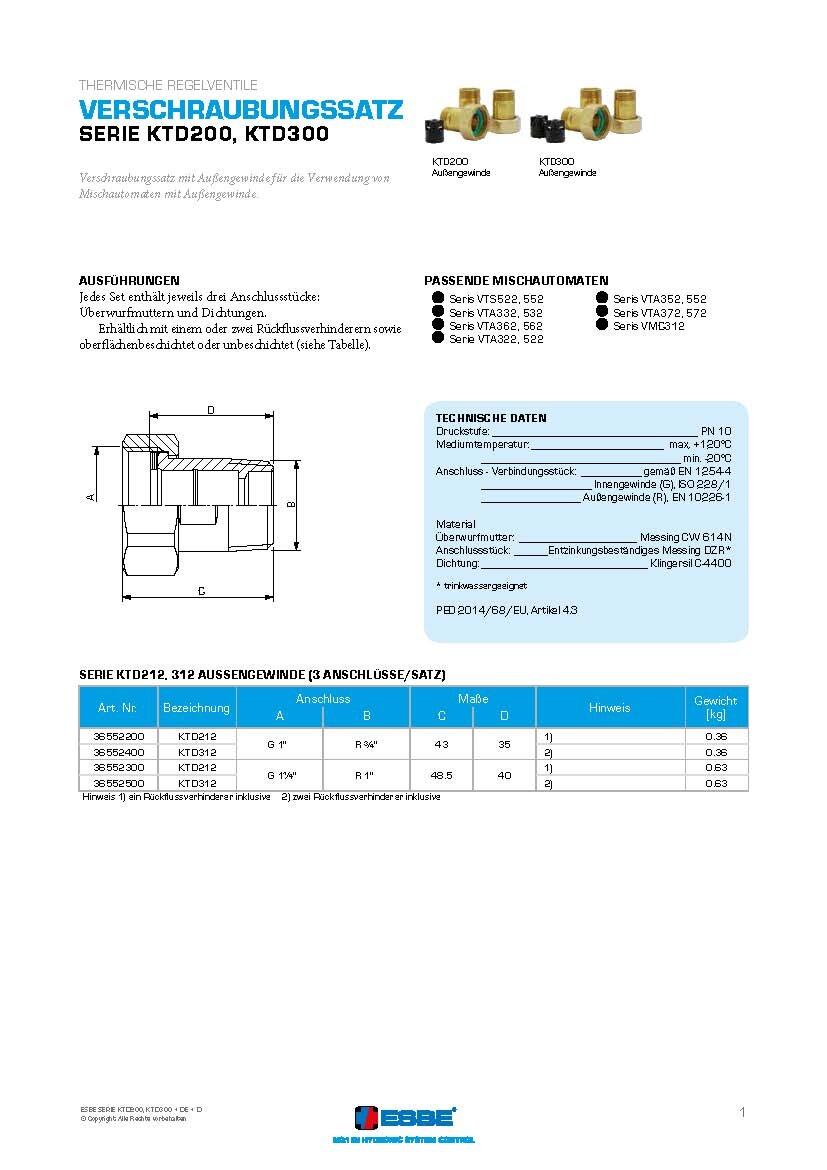 ESBE Verschraubungssatz ESKTD3122520 KTD312 3-teilig G 1" x R 3/4" AG inkl. RSV