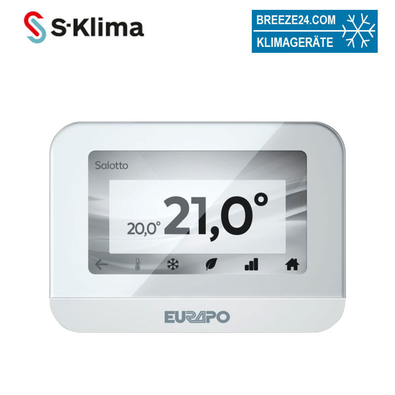 4,3" Touch Anzeige | Energieversorgung über Innengeräteplatine | Betriebs- und Störanzeige inkl. Fehlercodes | Erweiterte Parametereinstellung | Umfangreiche Wochenprogrammierung und Timereinstellungen | Einfache Auswahl des Betriebsmodus | Automatische Sommer/Winter-Umschaltung | Auswahl der Lüfterstufen: Auto - High - Med - Low | Geeignet für den Master/Slave-Betrieb |Inkl. Rahmen zur Aufputzmontage