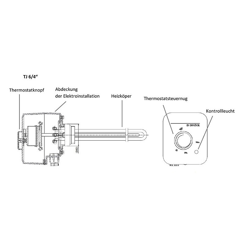 Die gewünschte Temperatur kann mittels Thermostat von 5°C bis 74°C stufenlos eingestellt werden. Die Heizstäbe verfügen über ein Sicherheitsthermostat mit einem Sicherheitstemperaturbegrenzer (STB), der eine Überhitzung verhindert.