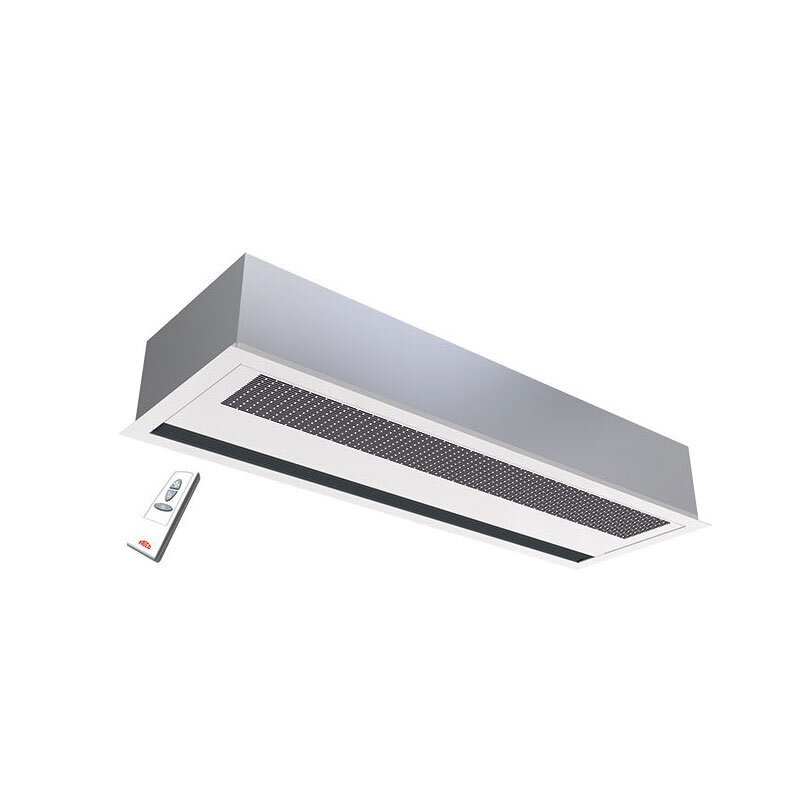 Der AR3200C ist ein kompakter Luftschleier für die Zwischendeckenmontage in Gewerbegebäuden und kleinen Industrieeingangsbereichen. Die empfohlene Installationshöhe für Geräte ohne Heizung und elektrisch beheizte Geräte beträgt 3,2 Meter.