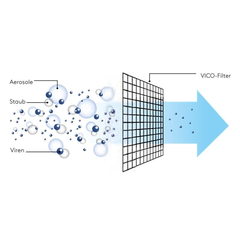Viren sind so klein, dass sie einzeln kaum ausgefiltert werden können. Als Cluster mit Staub oder Tröpfchen können sie aber mit recht einfachen Methoden aus der Luft gefiltert werden. Dies hat den Vorteil, dass keine teure, aufwendige Technik erforderlich ist, sondern langlebige, einfache Lösungen, wie sie mit dem VICO-Filter, möglich sind. Durch den sehr einfachen Aufbau können die Filter in nahezu allen Fujitsu Modellen eingesetzt werden.
