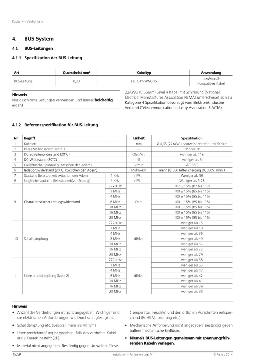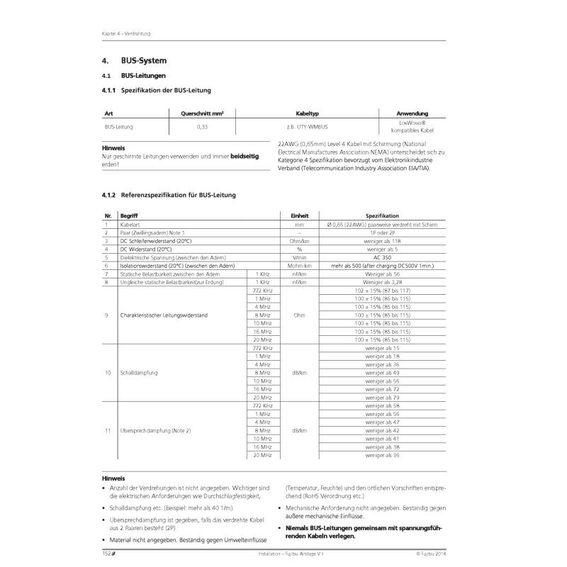 Das Kabel ist 2-adrig, geschirmt und entspricht in allen Bereichen den Fujitsu-Referenzanforderungen hinsichtlich Impedanz, Widerstand, Querschnitt, Dämpfung und Schirmung.