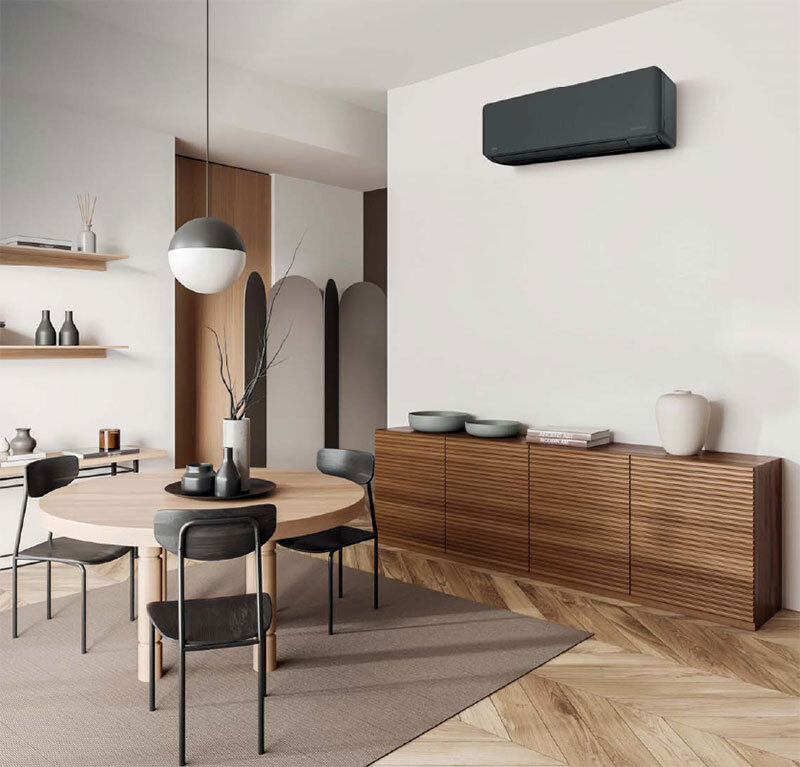 Das ausgezeichnete Design der anthrazit Kompakt-Wandmodelle eco besticht vor allem durch seine Schlichtheit. Auf sichtbare Lufteinlässe wird bei dieser mit dem umweltfreundlichen Kältemittel R32 betriebenen Geräteserie vollständig verzichtet. Dabei bleibt das Gerät mit einem Geräuschpegel ab 20 dB(A) sehr leise.