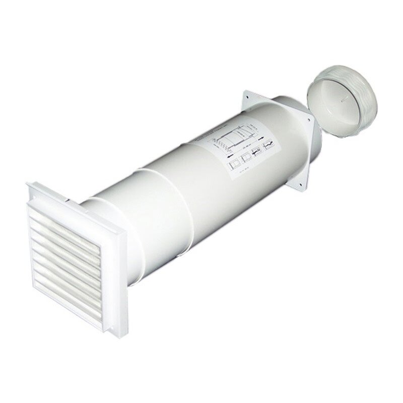 2. Setzen Sie das Schieberohr in den erstellten Wanddurchbruch so ein, dass sich das äußere Rohr (großer Durchmesser) auf der Wandinnenseite befindet. Um Kältebrücken zu vermeiden isolieren Sie das Teleskoprohr mit geeigneten Dämmmaterialien.