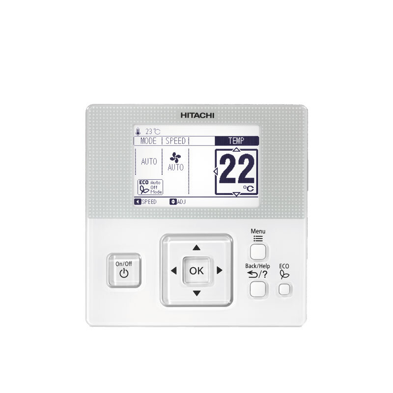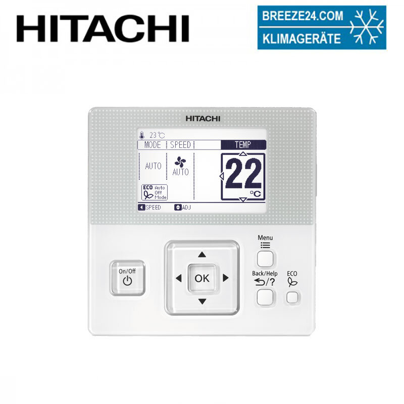 Anzeige der gewählten Betriebsart, Solltemperatur, Luftleitlamellenstellung und Ventilatordrehzahl. | Einstellbereich Sollwert im Heiz-/ Kühlbetrieb 16~32°C | Lüfterstufen (Auto/Hoch/Mittel/Klein/Leise) | Louvereinstellungen (für Deckenkassetten) | automatischen Swingbetrieb | Sleep Mode | Urlaubsschaltung, Leave Home (10~16°C, max 99 Tage) | Störungsanzeige durch Blinken der Betriebsanzeige und Fehlercode | Energieverbrauch (Kühl- und Heizbetrieb) | Zyklische Filterreinigungsanzeige | Einfaches Timer-Prorgamm (auch Täglich möglich) | 7 Tagetimer (Wochenprogr.) mit 5 unterschiedlichen Zeitprogrogrammen, individueller Temperatureinstellung und einem Urlaubsprogramm. | Sommer- Winterzeitumstellung | Eco Betrieb | EcoAuto Off | Einsatz als Zentralregler | Alarm-Code Anzeige | Sperrfunktion. Gegen unerwünschtes Verstellen der Betriebsart, Temperatur, Lüfterstufe und Flügelstellung. | Einstellung der Sprache (Deutsch/Englisch/Französich/Spanisch/Italienisch) | Einstellen einer Raumbezeichnung (z.B. Meeting-Raum 2) | Einstellen einer Service-Adresse / Notruf-Nummer | Hilfe Menü für den Benutzer | Bildschirmeinstellungs-Menü (Helligkeit/Kontrast/Rückbeleuchtung....) | Raumtemperatur-Anzeige wählbar