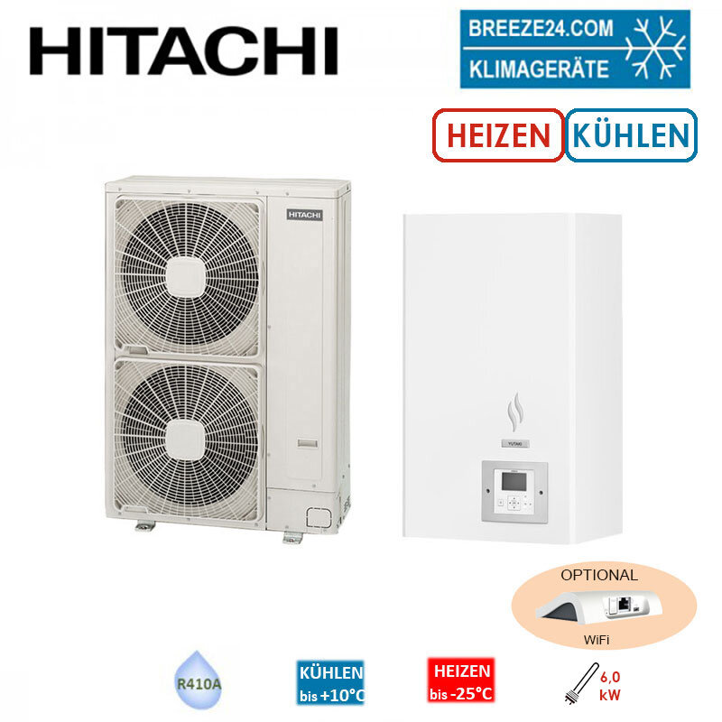 Hitachi Wärmepumpen Set YUTAKI S Wärmepumpe und Hydromodul mit Bivalenzfunktion und Heizstab | 6 kW.