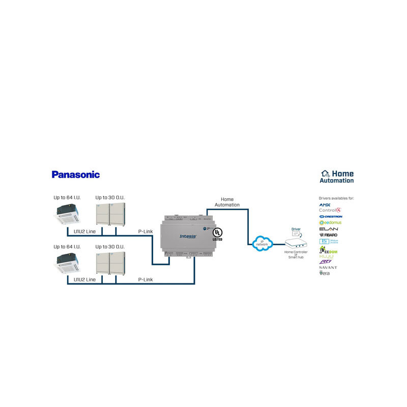 Scan: Automatische Identifizierung der im VRF-System vorhandenen Einheiten - Energieverbrauchssignale von jedem Innengerät sind verfügbar - Für die Integration verfügbare Signale der Außeneinheit - Integration mit jedem IP-Hausautomationssystem dank unseres offenen ASCII-Protokolls - Kompatibel mit den auf der Intesis-Webseite verfügbaren Treibern