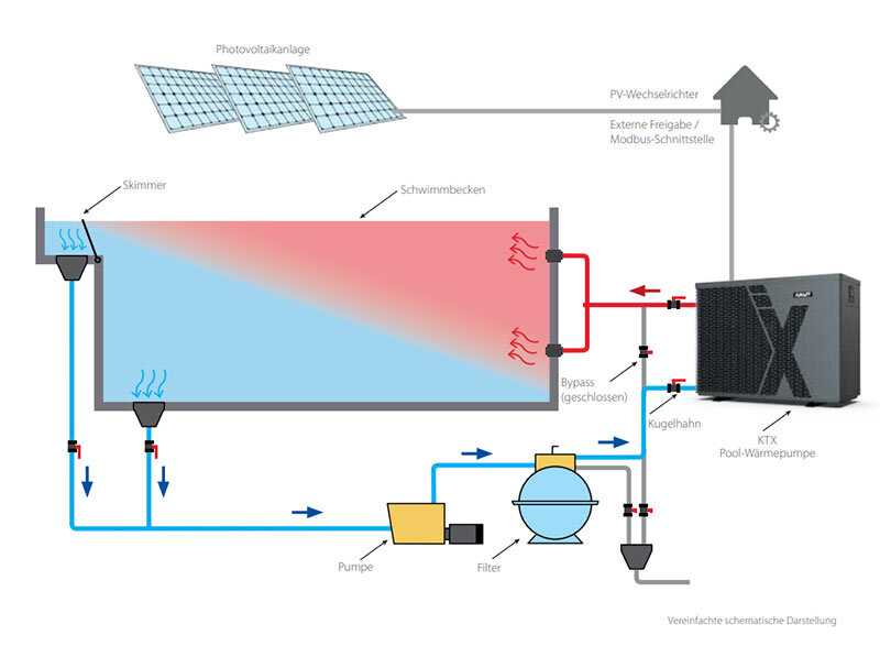 Die Wärmepumpe wird in Ihrem Wasserkreislauf hinter der Filtereinheit als Bypass eingeschlossen.
