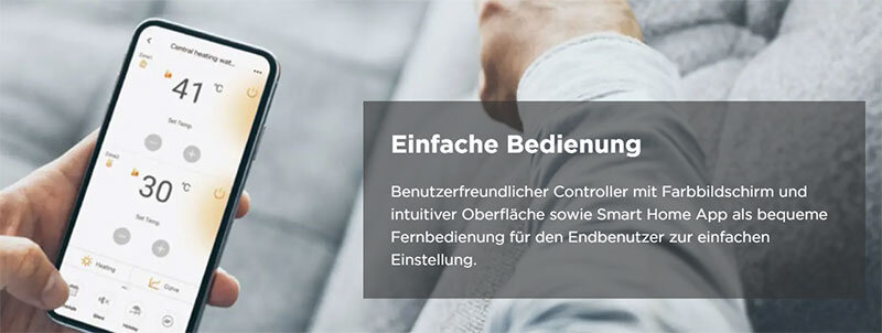 Benutzerfreundlicher Controller mit Farbbildschirm und intuitiver Oberfläche sowie Smart Home App als bequeme Fernbedienung für den Endbenutzer zur einfachen Einstellung.