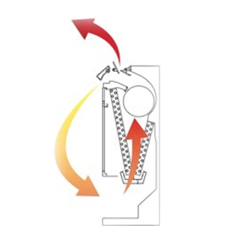 gleichzeitige Verteilung der Luft nach oben und unten im Heizbetrieb, um eine ideale Luftumwälzung im Raum zu gewährleisten und eine schnelle Erwärmung des Raums zu erreichen. Im Kühlbetrieb erfolgt der Luftaustritt nur nach oben um eine bestmögliche Effizienz zu erreichen