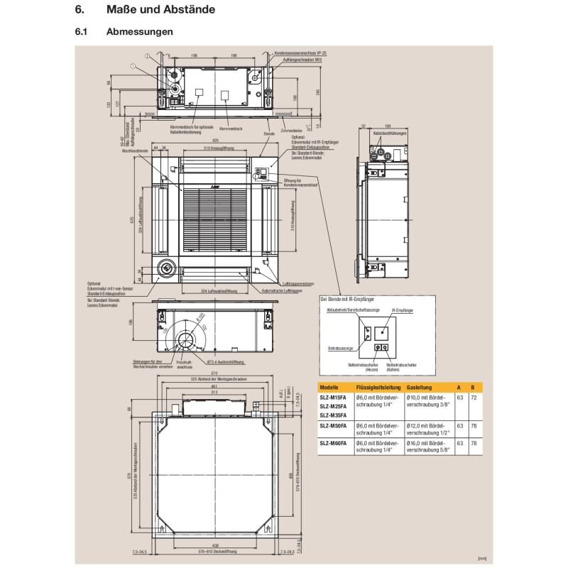 Innengeräte Mitsubishi Electric 4-Wege-Deckenkassette Euroraster 3 x SLZ-M25FA | 3 x 2.5 kW