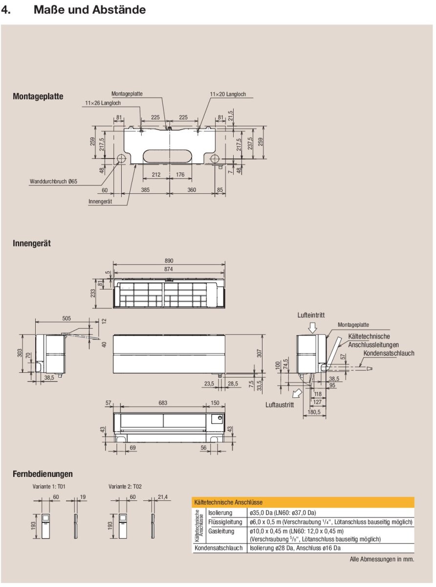| Kältetechnischer Anschluss Flüssigkeitsleitung: | |