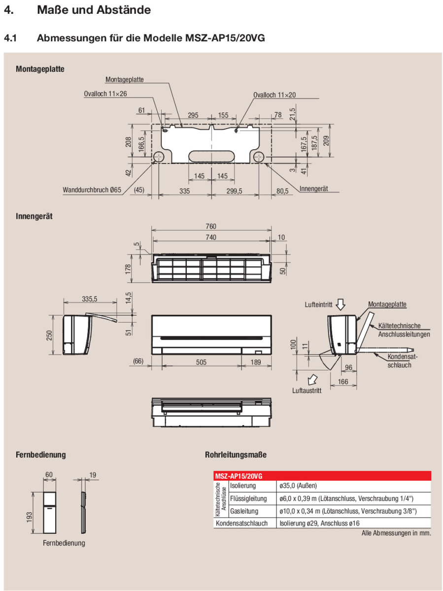| Kältetechnischer Anschluss Flüssigkeitsleitung: | |