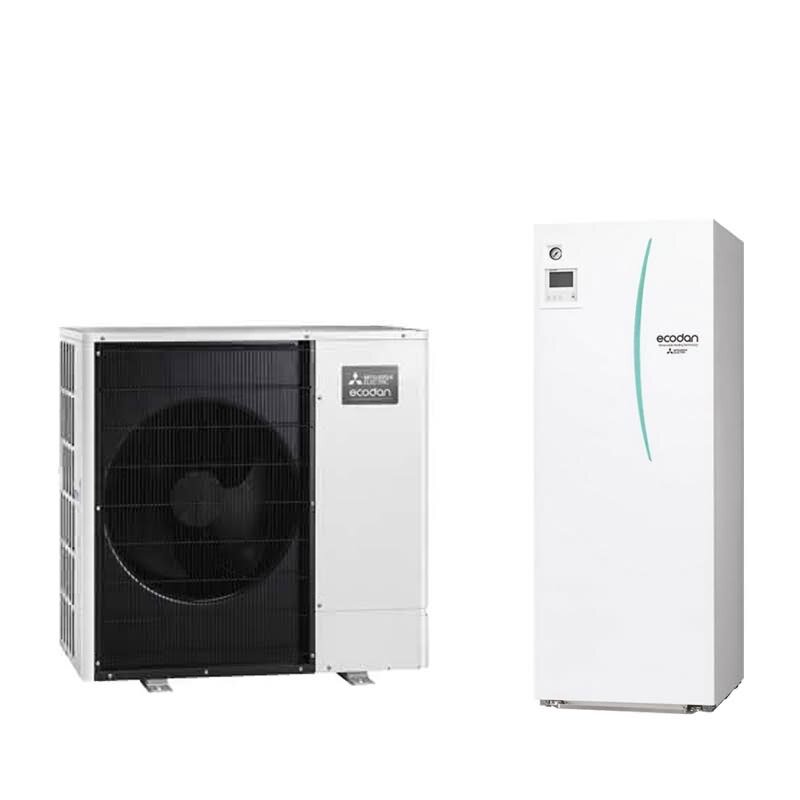 Mitsubishi Electric Zubadan Wärmepumpen Set, Außengerät und Hydromodul mit Speicher 200 Liter zum Heizen.