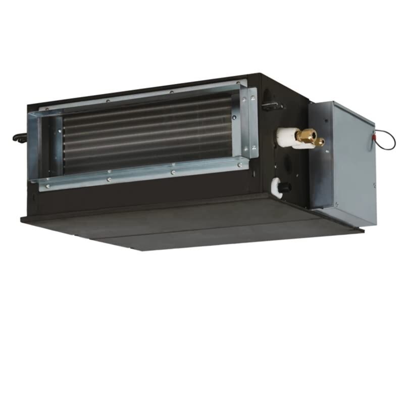 Ein leise laufender, schwingungsgedämpft gelagerter, 4-stufiger DC-Radialventilator mit Überhitzungsschutz saugt die Raumluft durch einen Kanal an. Der Ausblas der konditionierten Luft erfolgt in der Zwischendecke über einen Kanal. Die Rückluftansaugung kann wahlweise von hinten oder von unten erfolgen.