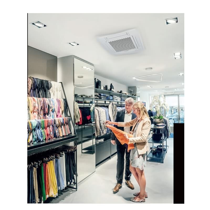 - 4-seitig ausblasende Deckenkassette zum Kühlen und Heizen