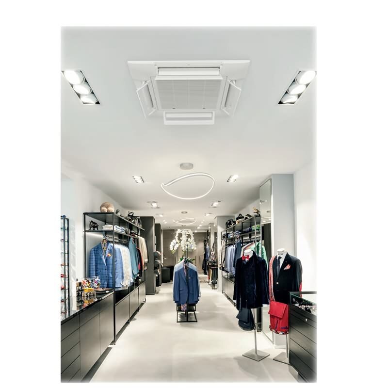 - 4-seitig ausblasende Deckenkassette zum Kühlen und Heizen