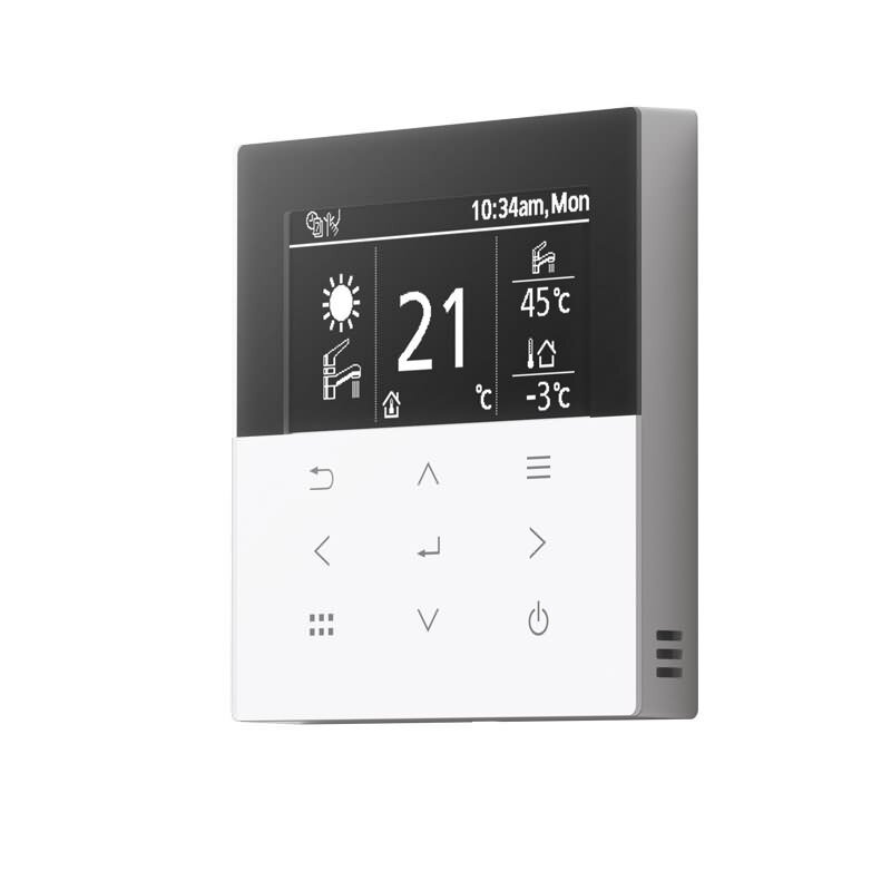 Diese neue Aquarea Bedieneinheit ist sorgfältig gestaltet, um optisch mit dem modernen Design der neuesten Generationen von Aquarea-Geräten harmonisch zu verschmelzen.