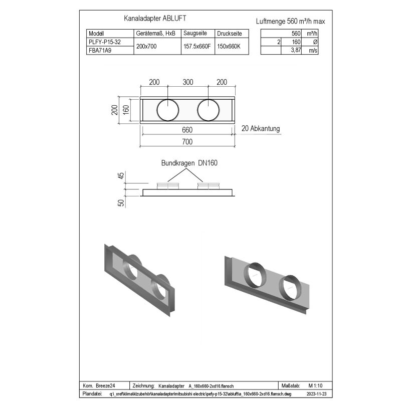 Penka Kanaladapter für Mitsubishi Electric PEFY-P15-32VMS1-E