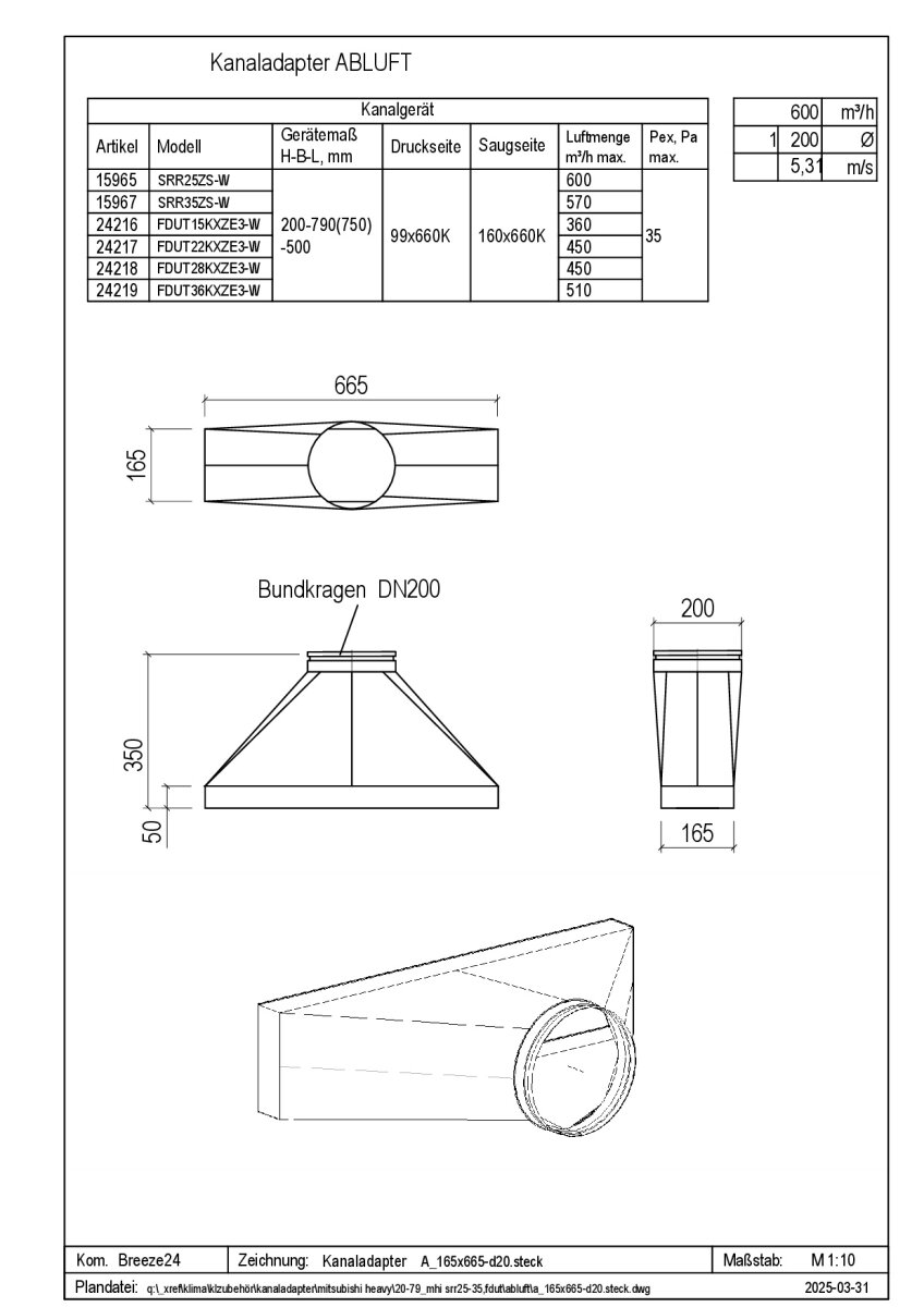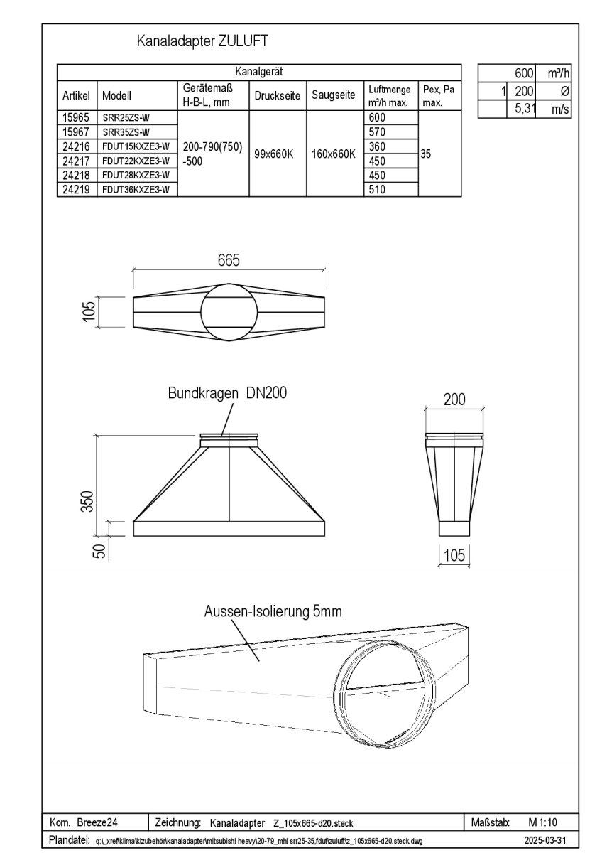 Kanaladapter für Daikin Kanalgerät, wählbar unisoliert | isoliert.