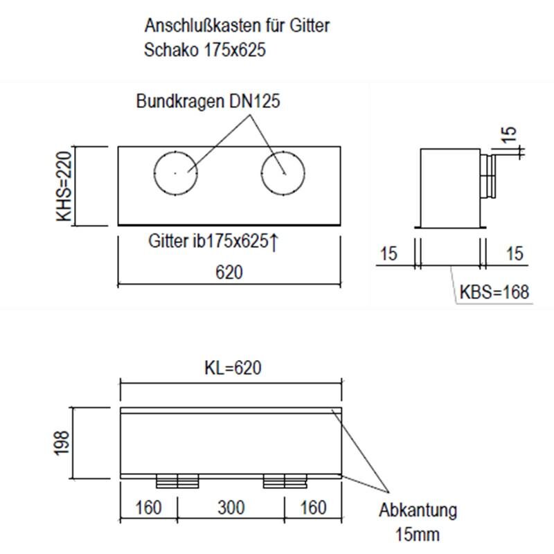 Penka SAK-S1- IB 175625x2d12 Anschlusskasten für Gitter Schako 175 x 625 mm.