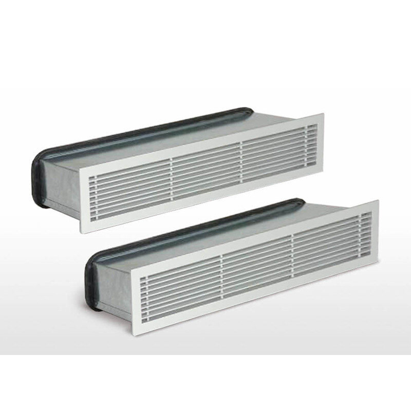 Mehrteiliges Nebenraum-Set aus oberflächenvergütetem Stahlblech für Umluft/Zuluft mit pulverbeschichtetem Lüftungsgitter und Umluftfilter