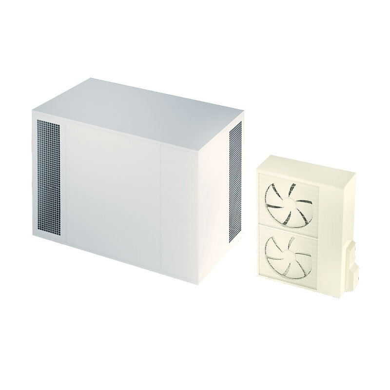 Seine flexible Konstruktion erlaubt die Luftströmung am Ein- und Ausgang in mehrere Richtungen zu richten und dadurch die Einsatzmöglichkeiten zu erweitern. Die Kondensatwasserableitung wird durch den durchlässigen Teil des Bodengrundrahmens der Schallschutzhaube sichergestellt.