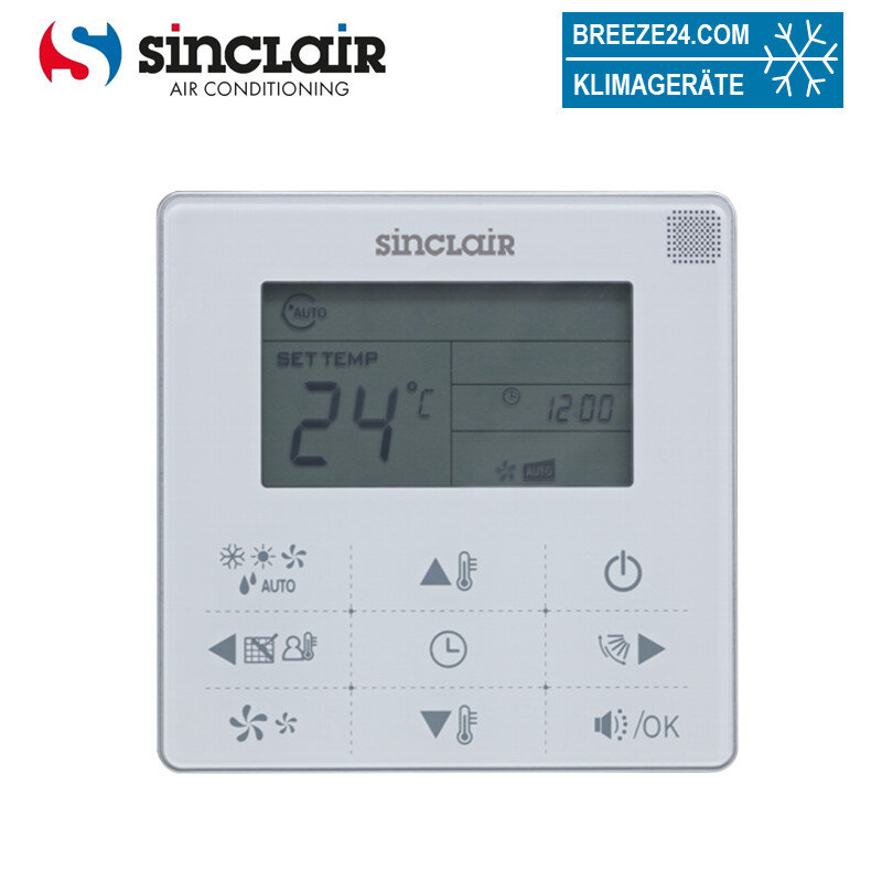 Kabel-Fernbedienung für Wandmontage | Alle grundlegenden Steuerfunktionen | Leise Betriebsart | Hinweis auf Filterreinigung | Auto-Restart | Infrarot-Empfänger für Standard-Fernbedienung | Adresseinstellung möglich