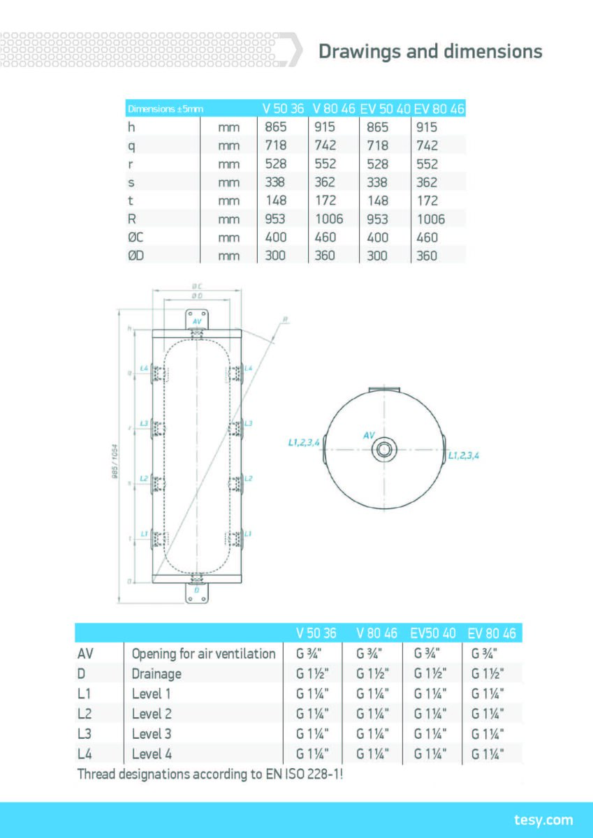 TESY EV 50 40 Pufferspeicher ohne Wärmetauscher ProfiLine | 50 Liter