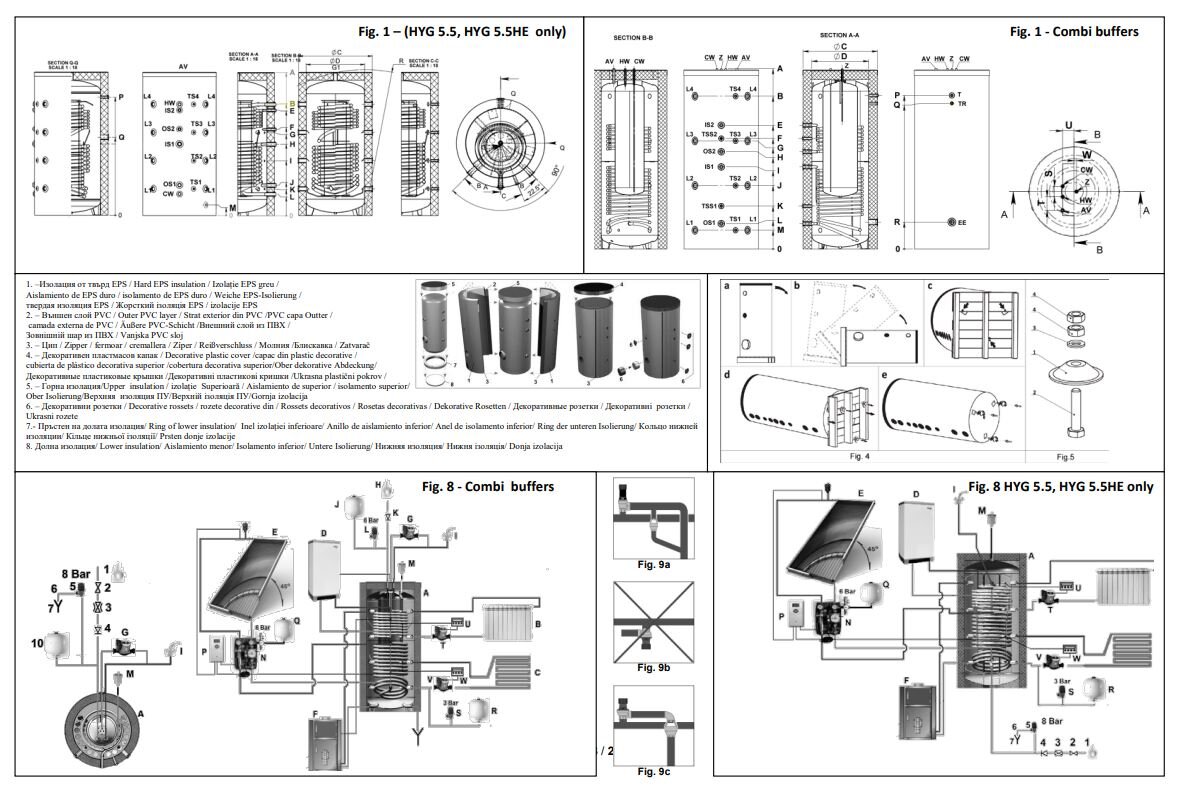 Kombinierte großvolumige Heizkessel für Heizungsanlagen und Trinkwarmwasser – Bauart „Tank in Tank“ ohne Wärmetauscher. Kombipuffer „TANK IN TANK“ mit eingebautem emaillierten Wasserspeicher für Brauchwarmwasser. Kessel, die in einem Gerät Pufferspeicher für Heizungsinstallation und volumetrischen emaillierten Kessel kombinieren.