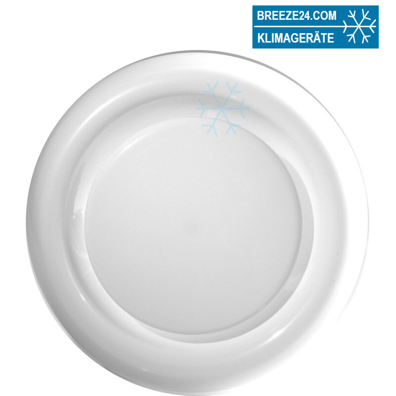 Aus weißem Kunststoff. Stufenlose Luftregulierung drehbarem, selbsthemmendem Ventilteller. Extra langer Einbaustutzen und Klemmring.