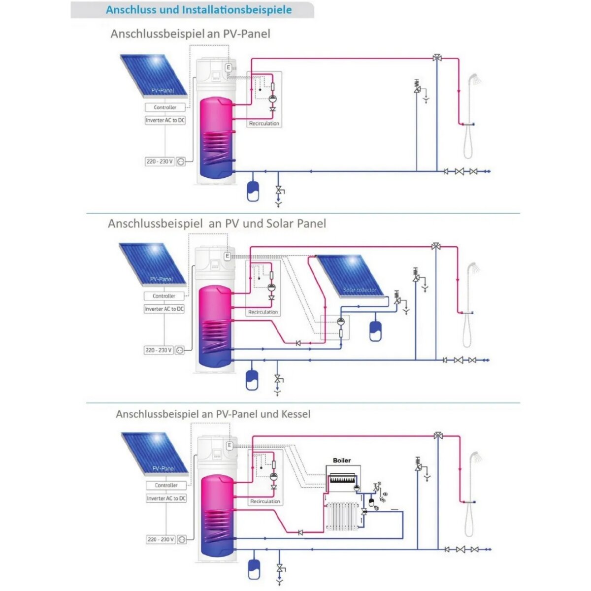 Die AquaThermica Trinkwasserwärmepumpe kann zusätzlich an weitere erneuerbare Energiequellen wie Photovoltaik- oder Solaranlagen sowie Heizkessel angeschlossen werden. Das benutzerfreundliche Bedienfeld ermöglicht eine einfache Programmierung der Anlage, während der automatische Anti-Legionellen-Zyklus und das Selbstdiagnosesystem für eine sichere und zuverlässige Nutzung sorgen. | Anschluss an erneuerbare Energiequellen wie Photovoltaik- oder Solaranlagen sowie Heizkessel möglich. | Benutzerfreundliches Bedienfeld für einfache Programmierung. | Automatischer Anti-Legionellen-Zyklus | Selbstdiagnosesystem für sichere und zuverlässige Nutzung