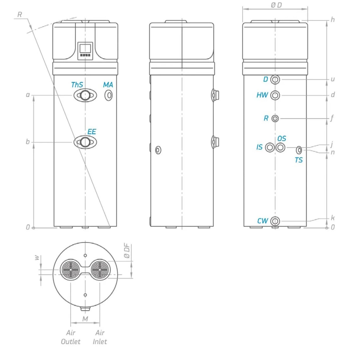 AquaThermica Pro mit Wärmetauscher ist eine bodenstehende Luft-Wasser-Wärmepumpe für die Warmwasserbereitung. Sie wird mit umweltfreundlichem Propan (Kältemittel R290) betrieben und ist mit externen Energiequellen wie Heizkesseln oder Solaranlagen kompatibel.