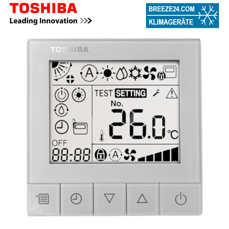 Toshiba RBC-ASCU11-E Hotel-Kabelfernbedienung mit großen Display.