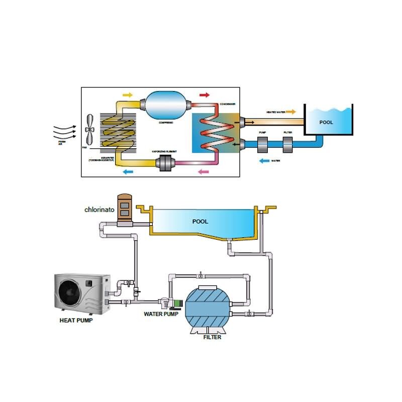 Die Mini-Pool-Wärmepumpe ist zum Heizen von Garten, Fertig- und aufblasbare Schwimmbecken. Es muss in das Poolfiltersystem eingebaut werden.