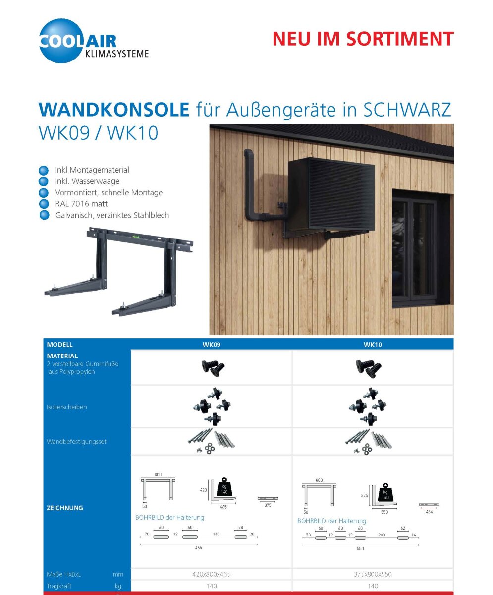 Wandkonsole für Klimaanlagen und Wärmepumpen Außengeräte in SCHWARZ WK10 | Auslegerlänge 550 mm bis 140 kg.